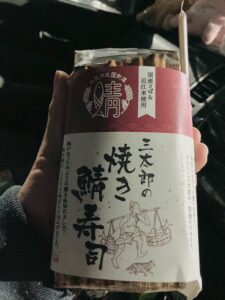 夕飯はお土産屋さんで売られていた名物(?)の焼き鯖寿司。