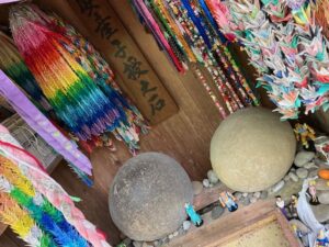 近くには転がり出た子生まれ石が祀られています。