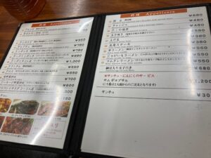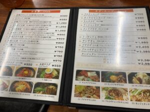 メニューを見ると定番韓国料理がたくさん。